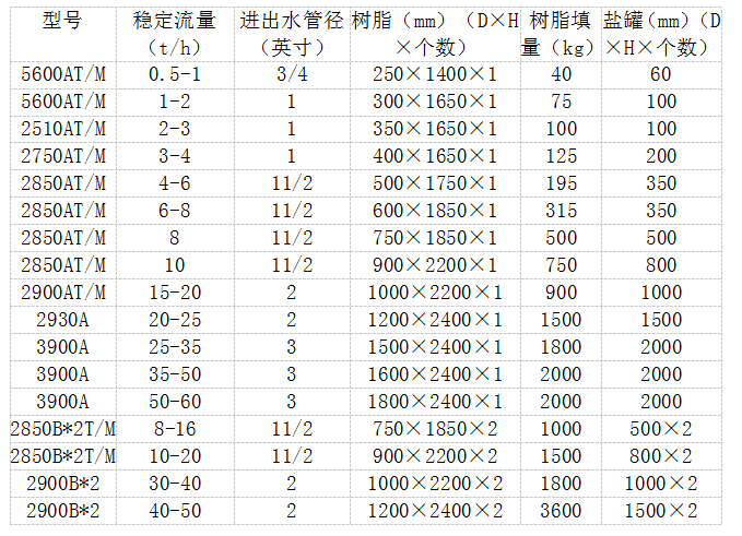 适用场合:时间型控制一般应用在硬度较低(﹤4mmol/L),用水稳定、出水要求不高,用水量较小的情况。